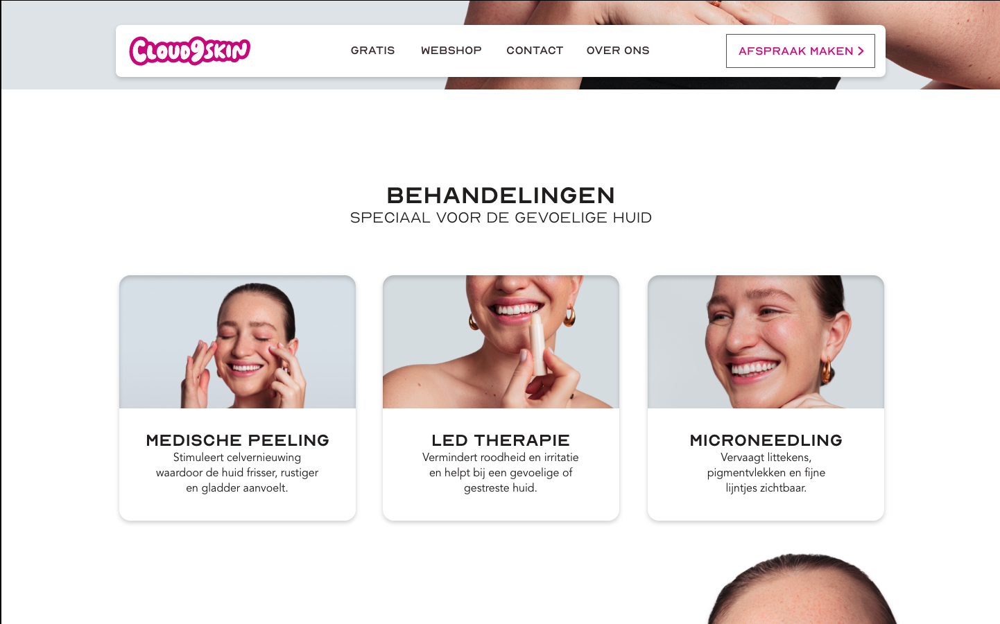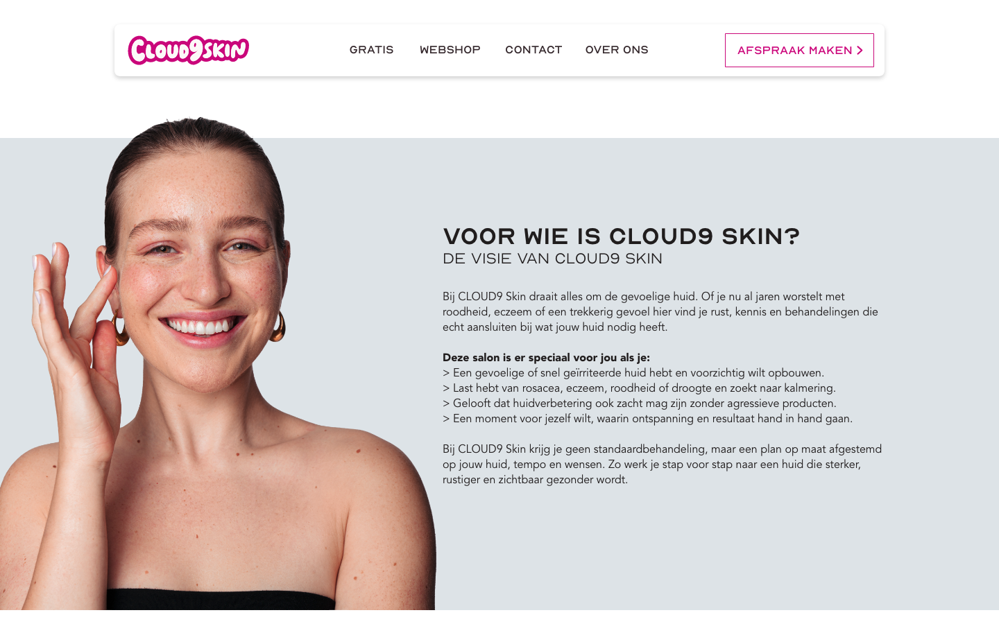 Cloud9Skin had een duidelijke specialisatie in de gevoelige huid, maar dat verschil was online nauwelijks zichtbaar. Voor een voorzichtige doelgroep zorgde dit voor onzekerheid. Door de branding en website te baseren op rust, begrip en veiligheid, hebben we Cloud9Skin gepositioneerd als een specialist die de gevoelige huid écht begrijpt.